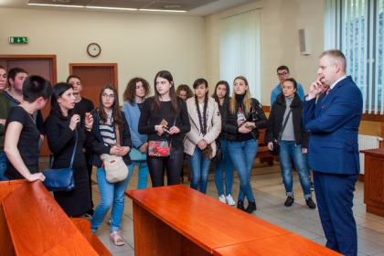 Odbyły się również wizyty w sądach w Sosnowcu i w Jaworznie. Z pracą Sądu Rejonowego w Sosnowcu oraz jego strukturą zapoznała uczestników praktyki Sędzia Sabina Czajkowska z III Wydziału Rodzinnego i Nieletnich, a z zasadami funkcjonowania Sądu Rejonowego w Jaworznie Prezes, SSR Paweł Wysocki. Wizyty te były doskonalą okazją do wymiany spostrzeżeń na temat funkcjonowania wymiaru sprawiedliwości w Polsce i Ukrainie.