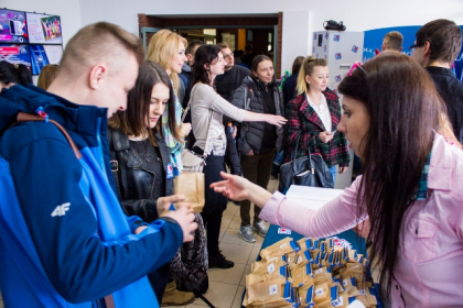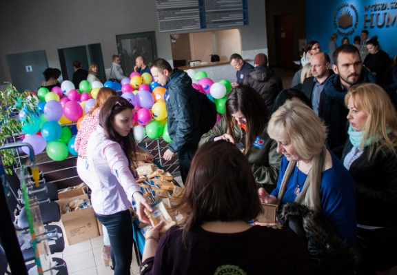 To była wyjątkowa niedziela w Wyższej Szkole Humanitas. Dla blisko 1000 studentów, którzy 23 kwietnia mieli zajęcia, ale także na wszystkich gości i przyjaciół sosnowieckiej uczelni, przygotowaliśmy wyjątkowe atrakcje, a wśród nich upominki, loteria fantowa, słodki poczęstunek oraz możliwość zrobienia sobie pamiątkowego, imprezowego zdjęcia.