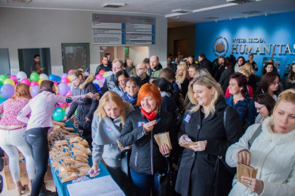 Wśród studentów pojawili się i tacy, którzy, podobnie jak Humanitas, obchodzili w niedzielę urodziny. W ramach prezentu otrzymali ufundowane przez rektora uczelni, prof. WSH Michała Kaczmarczyka bilety na jeden z koncertów w ramach jesiennej trasy Musicalu „Karol”. Bawiła się z nami także pani Aneta Żuławińska, wyjątkowa, bo pierwsza w historii absolwentka naszej uczelni. Na nią również czekał specjalny upominek.