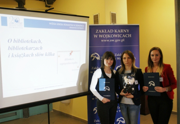 Książka może pełnić w życiu człowieka różne role. Jest m.in. doskonałym sposobem na odcięcie się od problemów dnia codziennego i przeniesienie się do innej rzeczywistości, co ma szczególne znaczenie w przypadku osób pozbawionych wolności. W dniu 12 maja 2017 r. bibliotekarki z Biblioteki Wyższej Szkoły Humanitas w Sosnowcu, Małgorzata Caban, Alina Imiołek i Żaneta Kubarek, wybrały się z wizytą do Zakładu Karnego w Wojkowicach, gdzie na zaproszenie Dyrektora Zakładu wygłosiły dla osadzonych prelekcję pt. „O bibliotekach, bibliotekarzach i książkach sów kilka”.Wizyta ta była jednym z elementów obchodów XIV Ogólnopolskiego Tygodnia Bibliotek, którego tegoroczna edycja odbyła się od hasłem „Biblioteka. Oczywiście!”.