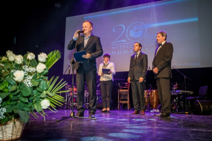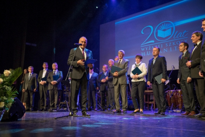 Słowom prowadzącego wtórował rektor WSH, dr hab. Michał Kaczmarczyk, który w swoim przemówieniu nawiązał między innymi do słów Baracka Obamy. – „Jeszcze nigdy nauka nie była tak istotnym kluczem do przetrwania” powiedział kila lat temu amerykański prezydent. Ale my wiedzieliśmy to już 20 lat temu, kiedy powstawała Wyższa Szkoła Humanitas. Wiedział to kanclerz, wiedział to rektor Jerzy Kopel, że nauka jest kluczem do sukcesu nie tylko dla absolwentów, ale także dla regionu. Kanclerz i rektor wiedzieli coś jeszcze - że uczelnia musi być miejscem nie tylko przyjaznym, ale także wyjątkowym w wymiarze społecznym, interpersonalnym, kulturowym. Musi być miejscem, w którym chce się być. Po tych 20 latach mogę powiedzieć, że to przekonanie, które leżało u podstaw założenia tej uczelni, wynikające z obecnej w nazwie idei „humanitas”, udało się w pełni zrealizować z czego jesteśmy dumni – mówił Rektor WSH Michał Kaczmarczyk.
