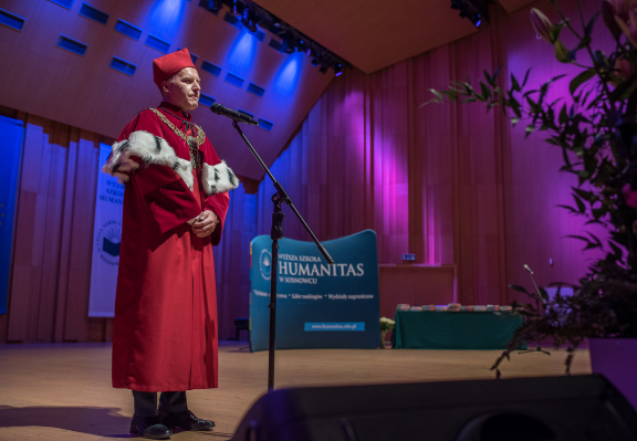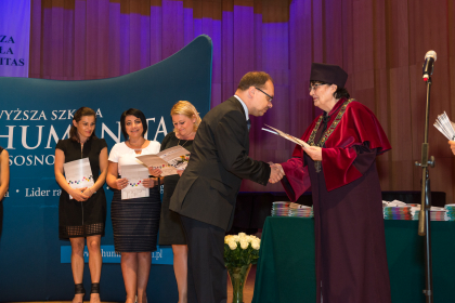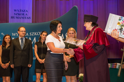 Ceremonię rozpoczął Prorektor WSH, dr Mariusz Lekston, który podziękował wszystkim absolwentom za zaufanie jakim obdarzyli Wyższą Szkołę Humanitas. Podkreślił także, że jesteśmy dumni z faktu, iż wielu z naszych słuchaczy decyduje się na kontynuowanie procesu kształcenia wybierając naszą uczelnię. W imieniu Władz Miasta absolwentów przywitał Wiceprezydent Sosnowca Krzysztof Haładus. Następnie Dziekan WSH dr Maria Zrałek, prof. WSH osobiście wręczyła świadectwa ukończenia studiów podyplomowych.