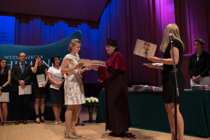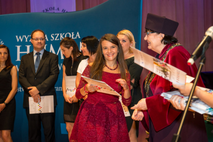 Elementem kończącym oficjalną część gali było wręczenie przez Panią mgr Agatę Dudek, Wicekanclerz WSH wyróżnień najlepszym absolwentom.