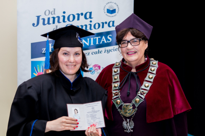 Studenci otrzymali dyplomy z rąk Dziekan WSH, prof. Marii Zrałek, która pogratulowała wszystkim absolwentom i zaznaczyła, że studia w wybranej przez nich formule wymagają ogromnej pracy własnej. Gratulacje i życzenia przekazał również dyrektor Instytutu Polsko-Ukraińskiej Współpracy prof. Yuri Karyagin.