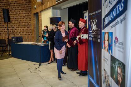 Wydarzenie oficjalnie rozpoczął JM Rektor Wyższej Szkoły Humanitas dr hab. Michał Kaczmarczyk, prof. WSH, który powitał zgromadzonych Gości, pogratulował absolwentom ukończenia studiów oraz przekazał życzenia dalszych sukcesów w życiu zawodowym i osobistym.