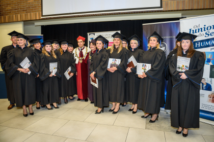Blisko stu absolwentów studiów I, II stopnia oraz jednolitych magisterskich odebrało dyplomy ukończenia studiów podczas uroczystej Gali Absolwentów 2017. W tym wyjątkowym wydarzeniu, oprócz tegorocznych absolwentów, udział wzięli przedstawiciele władz samorządowych, służb mundurowych oraz kadry naukowej Wyższej Szkoły Humanitas. Uroczystość odbyła się dnia 12 września br. o godz. 17.00 w Auli Uczelni w Sosnowcu.