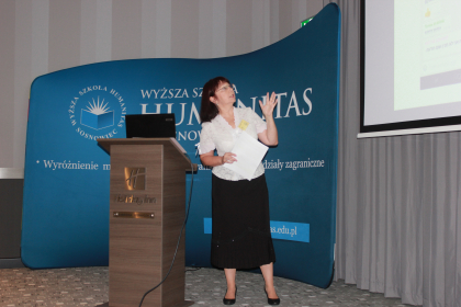 - Dzisiejsze sposoby komunikowania się są diametralnie różne od tych, którymi posługiwało się pokolenie naszych rodziców, czy dziadków. Pokolenie tzw. "milenialsów" preferuje kontakt poprzez portale społecznościowe lub maile, zaś pokolenie z generacji tzw. „Baby boom" ceni spotkanie i kontakt osobisty. Bez względu jednak na formę tych interakcji, wszyscy komunikujemy się za pomocą dialogu, bo to przecież pierwotna forma kontaktu międzyludzkiego, wymiany myśli, przeżyć i uczuć. Czym jest więc nie tylko nasza, ale także jakakolwiek inna konferencja, jak nie dialogiem? – podkreślała dr Iwona Dronia, dyrektor Instytutu Filologii WSH, organizatorka wydarzenia.