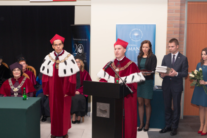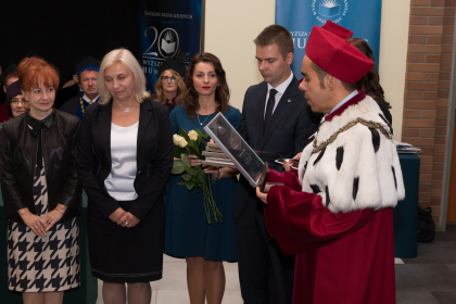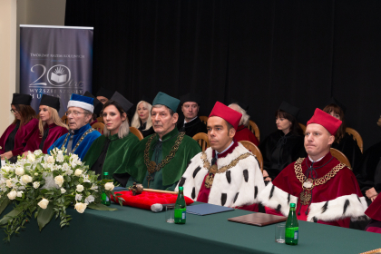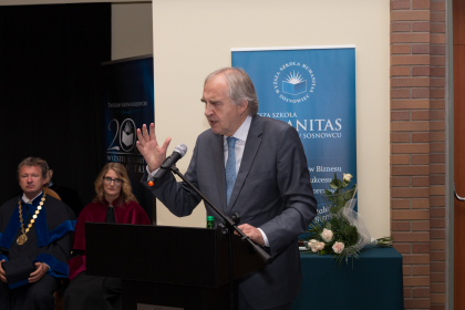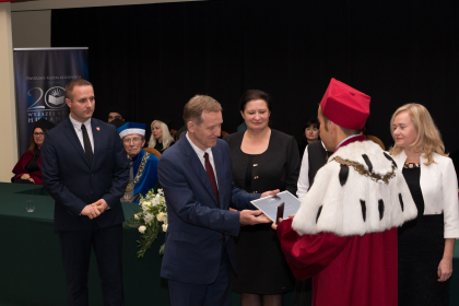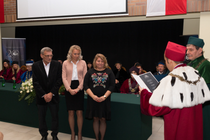 Uroczystość rozpoczął Aleksander Dudek, Kanclerz i założyciel uczelni, który w skrócie przedstawił historię Sosnowca oraz nawiązał do minionych 20 lat działalności uczelni.