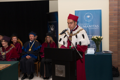 - Pozwolę sobie bardzo krótko i syntetycznie podsumować miniony rok akademicki. Norman Davies znakomity historyk powiedział „Spojrzenie w przeszłość pozwala nam odczuwać dumę z teraźniejszości i projektować przyszłość”. W tym kontekście spoglądam na to, co udało nam się osiągnąć w minionym roku akademickim. Mamy nie tylko wiele powodów do dumy i satysfakcji, ale też wiele rozpoczętych przedsięwzięć, które są wyzwaniem na ten i kolejny rok akademicki – podkreślił prof. WSH dr hab. Michał Kaczmarczyk, Rektor Wyższej Szkoły Humanitas i przekazał zgromadzonym informację o ogromnym sukcesie Wydziału Administracji i Zarządzania WSH, który otrzymał wysoką kategorię naukową B przyznawaną przez Ministerstwo Nauki i Szkolnictwa Wyższego.