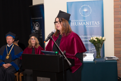- Na studia do Wyższej Szkoły Humanitas przyszliście zdobyć wiedzę, ale to także okres w którym oprócz nauki macie okazję się bawić, udzielać w Samorządzie Studenckim, poznawać nowych ludzi oraz zdobywać nowe przyjaźnie. Życzę Wam, żebyście byli zachwyceni tym okresem pobytu w naszej uczelni – zwróciła się do studentów prof. WSH dr Maria Zrałek, Dziekan Wydziału Nauk Humanistycznych oraz Wydziału Administracji i Zarządzania WSH.