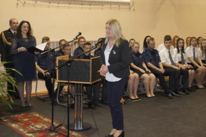 Mgr Ewa Baran w imieniu prof WSH dr hab. Michała Kaczmarczyka, Rektora Wyższej Szkoły Humanitas, złożyła pierwszoklasiom serdeczne życzenia oraz wyraziła nadzieję, że współpraca z uczelnią w znaczący sposób przyczyni się do wzbogacenia oferty edukacyjnej szkoły.