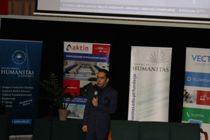 - Ideą naszej uczelni jest przede wszystkim upowszechnianie wiedzy o bardzo aplikacyjnym, użytecznym charakterze. Taki cel przyświeca nam podczas kształcenia studentów na studiach I i II stopnia, studiach podyplomowych oraz na organizowanych przez nas konferencjach. Chcemy dzielić się z Państwem wiedzą oraz osiągnięciami nauki, które dają się w sposób praktyczny wykorzystać w Państwa działalności zawodowej. Rzeczywistość związana z ochroną danych osobowych, o której dzisiaj będzie mowa, zmienia się bardzo szybko i dynamicznie. Niedługo czeka nas kolejna zmiana w tym zakresie, w związku z tym cieszę się, że właśnie w takim momencie możemy się spotykać i jako jedni z pierwszych mówić o rozwiązaniach, które mogą być zaadoptowane w Państwa działalności menedżerskiej w szkołach i placówkach oświatowych – mówił Rektor Wyższej Szkoły Humanitas i życzył zgromadzonym, aby wnioski z przeprowadzonych obrad były równie praktyczne jak tytuły wystąpień, które znalazły się w programie konferencji.