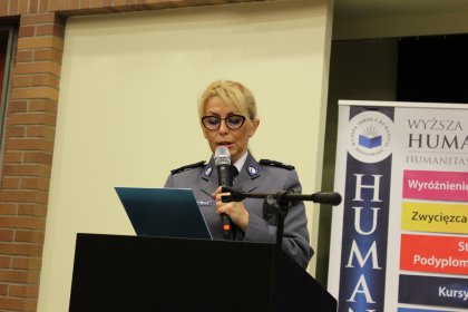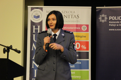 Następnie, policyjne działania profilaktyczne oraz rolę dzielnicowych w prowadzeniu tych działań przybliżyła zgromadzonym mł. insp. dr Marzena Kordaczuk-Wąs, radca w Wydziale Prewencji Biura Prewencji KGP.