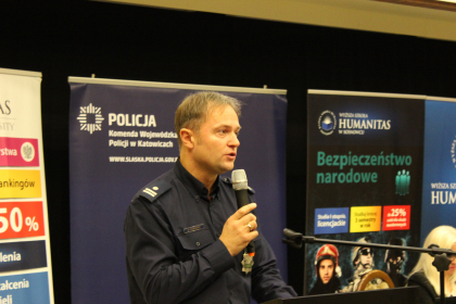W imieniu nadinsp. mgr Krzysztofa Justyńskiego, Komendanta Wojewódzkiego Policji w Katowicach głos zabrał podinsp. Dawid Kaszuba, naczelnik Wydziału Prewencji.