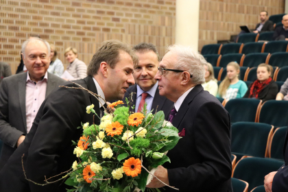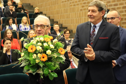 - Nauka z definicji jest czymś społecznym. Odkrywa prawdę, wykuwa innowacje, wprowadza rozwiązania, które są użyteczne dla człowieka. Ten kto nie rozumie ludzi, nie potrafi słuchać, nie potrafi budować relacji oraz nie potrafi pracować dla ludzi, nigdy nie będzie w stanie uprawiać nauki przez wielkie N i nie będzie w stanie tworzyć tej nauki w taki sposób, żeby rzeczywiście służyła rozwojowi i postępowi. Ci, którzy uprawiają naukę powinni to czynić, pisał Eliot, z miłości do człowieka i mimo, że brzmi to górnolotnie jest w tym stwierdzeniu głęboka prawda. Nie ulega wątpliwości, że gdyby do oceny naukowca przykładać to właśnie kryterium, kryterium szacunku dla drugiego człowieka, miłości dla drugiego człowieka, życzliwości, serdeczności to prof. Andrzej Kupich byłby na czele listy rankingowej polskich naukowców – mówił prof. WSH dr hab. Michał Kaczmarczyk.