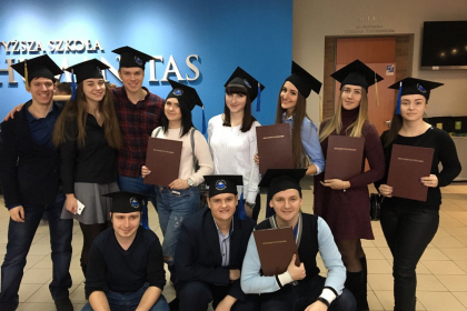 W ramach nowatorskiego programu kształcenia na odległość adresowanego do młodzieży zagranicznej, grupa studentów z Uniwersytetu im. Alfreda Nobela w Dnieprze, na Ukrainie, odebrała dyplomy ukończenia studiów magisterskich na kierunku Zarządzanie o specjalności Zarządzanie firmą na rynkach krajowych i zagranicznych. Wydarzenie odbyło się w sobotę 16 grudnia w Wyższej Szkole Humanitas w Sosnowcu.