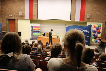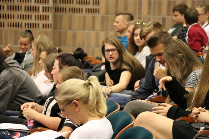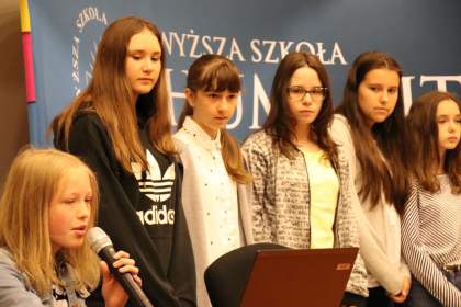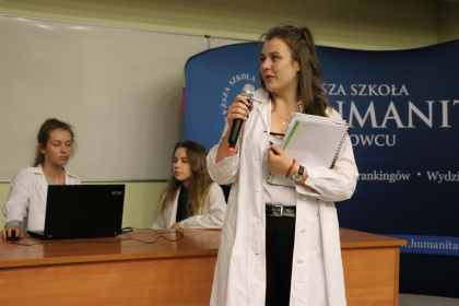 Spotkanie z młodzieżą oficjalnie rozpoczęła mgr Ewa Kraus – Prodziekan ds. studenckich Wydziału Nauk Humanistycznych Wyższej Szkoły Humanitas w Sosnowcu.