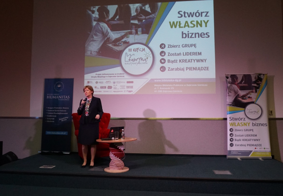 We wtorek 13 listopada w Miejskiej Bibliotece Publicznej w Dąbrowie Górniczej miała miejsce Inauguracja III edycji projektu „Fabryka Kreatywnego Biznesu”. Wyższa Szkoła Humanitas od lat prowadzi inicjatywy propagujące przedsiębiorczość i rozwój lokalnego biznesu, dlatego z przyjemnością objęła patronatem honorowym i opieką merytoryczną III edycję projektu „Fabryka Kreatywnego Biznesu”. Wykład inauguracyjny wygłosiła Pani prof. nadzw. dr hab. Jolanta Staszewska Dyrektor Instytutu Zarządzania i Ekonomii WSH.
