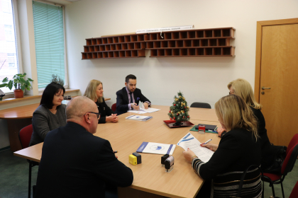 W środowym spotkaniu z dyrektorami szkół uczestniczyli: prof. WSH dr hab. Michał Kaczmarczyk, rektor uczelni oraz mgr Ewa Baran, pełnomocnik kanclerza ds. współpracy z otoczeniem społeczno-gospodarczym.