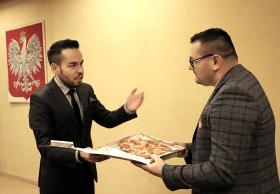 Rektor Wyższej Szkoły Humanitas, prof. WSH dr hab. Michał Kaczmarczyk, przygotował i przekazał nietypowy dar z okazji Wielkiej Orkiestry Świątecznej Pomocy. Była nim pizza upieczona osobiście przez Rektora, według jego, autorskiego przepisu. Pizzę w ramach aukcji WOŚP wylicytował student prawa na naszej uczelni, Pan Dariusz Markocki. W minioną niedzielę, w gabinecie JM Rektora, włoska przekąska trafiła do rąk Pana Dariusza.