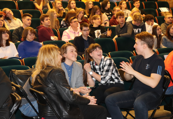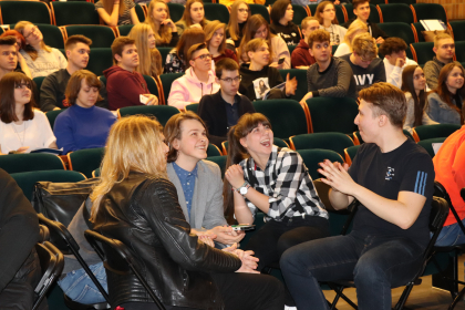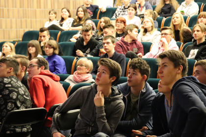 Konkurs był zajęciem angażującym nie tylko uczestników, ale również całą publiczność! Pytania wyświetlały się na ekranie, a odpowiedzi udzielano prosto ze smartfonów, dzięki szybkiemu zalogowaniu się do aplikacji Kahoot – wszystko w duchu cyfryzacji i adaptowania się do standardów społeczeństwa informacyjnego.