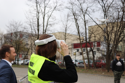 Atrakcją był pokaz dronów na świeżym powietrzu przy wykorzystaniu gogli, dzięki którym operator w czasie rzeczywistym obserwował obraz z kamery urządzenia – co wywarło duże wrażenie na uczestnikach.