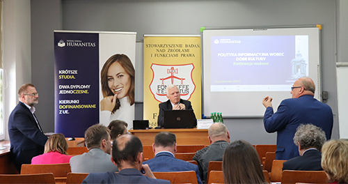 W dniu 21 października 2019 r. odbyła się już kolejna z cyklu Ochrona dziedzictwa naukowego Konferencja Naukowa Polityka informacyjna wobec dóbr kultury. Pomysłodawcą tego wydarzenia jest dr hab. prof. WSH Dariusz Rozmus oraz Rektor Wyższej Szkoły Humanitas dr hab. prof. WSH Michał Kaczmarczyk. Otwierając obrady dr. hab. prof. WSH Michał Kaczmarczyk podkreślił jak istotne jest ze względów praktycznych podejmowanie zagadnień interdyscyplinarnych, a do takich niewątpliwie należy mediatyzacja życia społecznego, wzrastająca rola w dostępie do informacji Internetu czy też stosowanie swoistego marketingu, public relations dóbr kultury.