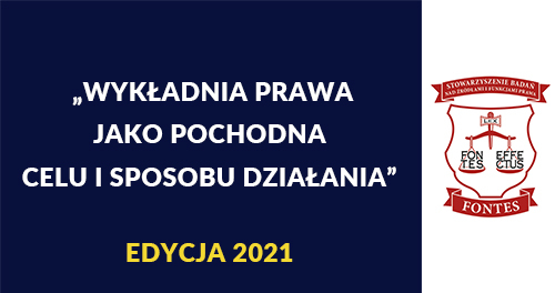 Miło nam poinformować, że 17 grudnia 2021 r. zostały ogłoszone wyniki ogólnopolskiego konkursu na prace badawcze „Wykładnia prawa jako pochodna celu i sposobu działania – edycja 2021” organizowanego przez Stowarzyszenie Badań nad Źródłami i Funkcjami Prawa „FONTES”.