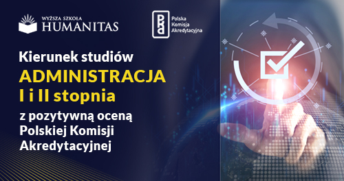 Z dumą informujemy, że studia I i II stopnia na kierunku administracja uzyskały pozytywną ocenę Polskiej Komisji Akredytacyjnej. Prezydium Komisji stwierdziło, iż proces kształcenia realizowany w Wyższej Szkole Humanitas umożliwia studentom kierunku administracja osiągnięcie założonych efektów uczenia się dla studiów pierwszego i drugiego stopnia o profilu ogólnoakademickim.