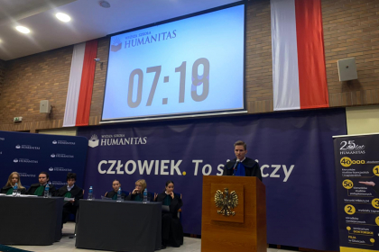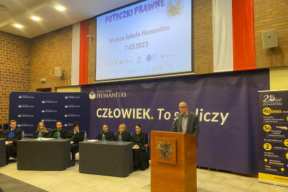We wtorek, 7 marca 2023 r. rozpoczęła się 5.edycja wojewódzkiego konkursu pod nazwą „Potyczki prawne”. W auli Wyższej Szkoły Humanitas w Sosnowcu rozegrano jego ćwierćfinał, a stawką było wejście do półfinału.