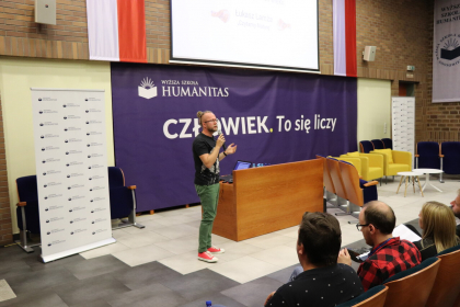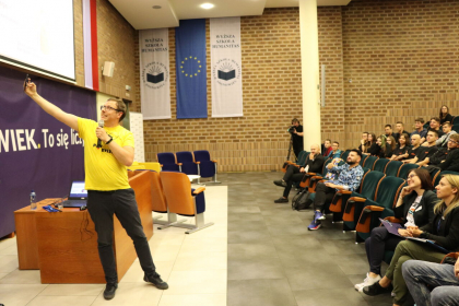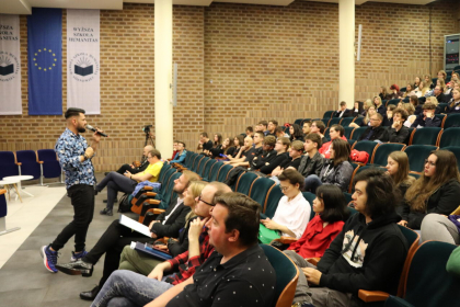 - To od nas zależy co popularyzujemy i przekazujemy dalej. Ta konferencja daje nam możliwość poznania ciekawej formy popularyzowania nauki w tym, co ma ona najlepszego do pokazania. To dzisiejsze spotkanie pokaże nam jak oddzielać prawdę od mitów, od fake newsów. Ponieważ za każdą informacją stoi człowiek i również człowiek tę informację odbierze, przekaże, a nawet powieli. Popularyzacja informacji, udostępnianie ich w sieci to również odpowiedzialność zarówno wobec samego siebie, jak i wobec społeczności, której ją udostępnimy - tymi słowami w murach Akademii Humanitas przywitał przybyłych licealistów oraz youtuberów rektor prof. AH dr hab. Michał Kaczmarczyk, MBA.
