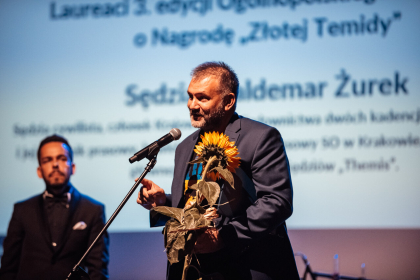 Pierwszą statuetkę Złotej Temidy odebrał z rąk Rektora Akademii Humanitas - prof. AH dra hab. Michała Kaczmarka, MBA - sędzia Sądu Okręgowego w Krakowie, Waldemar Żurek.