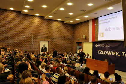 Wykłady prof. Matusza Goli rozpoczął warsztat specjalistyczny „Wprowadzenie do diagnostyki i terapii uzależnień behawioralnych”. Przybyli słuchacze poznali charakterystykę uzależnień behawioralnych takich jak hazard, szczególnie online, nałogowe korzystanie z gier komputerowych, czy też kompulsywne zachowania seksualne.