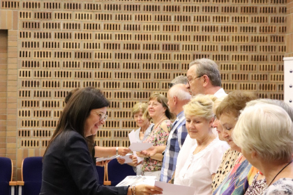 Przewodnicząca Rady Miejskiej Ewa Szota, również pogratulowała seniorom zaliczenia wszystkich egzaminów i ukończenia kolejnego semestru w UTW: - Ja również niebawem będę absolwentką Akademii Humanitas jak państwo. W tym roku kończę w murach tej uczelni studia MBA dla liderów samorządu. I to mnie niezwykle cieszy, że razem jesteśmy akademicką rodziną.