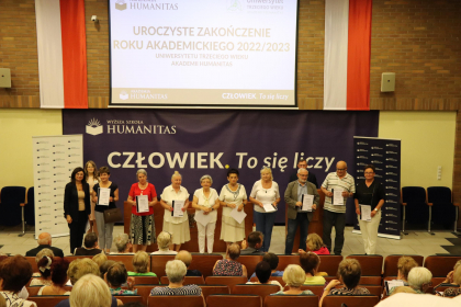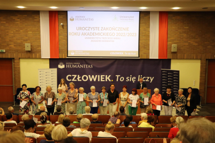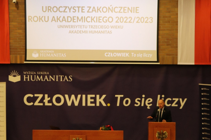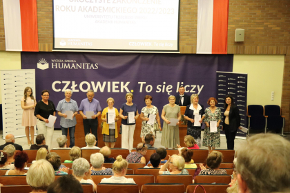 To już! Dnia 21 czerwca 2023 roku uroczyście zakończono rok akademicki 2022/2023 dla słuchaczy Uniwersytetu Trzeciego Wieku Akademii Humanitas. W uroczystości wzięli udział Prorektor ds. organizacyjno-prawnych i polityki kadrowej - dr Mariusz Lekston, który wygłosił wykład dla przybyłych oraz Dziekan Wydziału Nauk Stosowanych - Ewa Kraus, która powitała przybyłych seniorów. Pośród zaproszonych gości była również przedstawicielka Urzędu Miasta Sosnowca - Ewa Szota, przewodnicząca Rady Miejskiej.