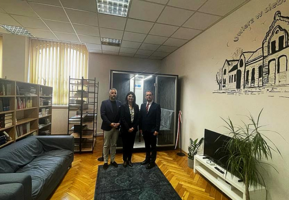 Uroczyste otwarcie kabiny i pracowni miało miejsce w bibliotece SP 45, przyciągnęło wielu znamienitych gości. Wśród obecnych znaleźli się ramienia Akademii Humanitas Dziekan Wydziału Nauk Stosowanych Ewa Kraus oraz Koordynator Projektów Rozwojowych Mateusz Kokosiński.