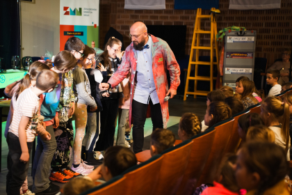 Nie zapomnieliśmy o najmłodszych uczestnikach Zagłębiowskiego Maratonu Nauki. Tym razem Michał Szydłowski, znany jako Pan Korek, wraz z ekipą Szalonych Naukowców, zaprosił na edukacyjne widowisko Brr, jak zimno, pokazując bezpieczne zastosowania ciekłego azotu. To fascynujące doświadczenie pozwoliło dzieciom poznać świat ekstremalnie niskich temperatur i ich praktycznego wykorzystania. Były wybuchy, dymy, morze kolorowych piłek, czyli to wszystko co dzieci lubią najbardziej. Dziękujemy za uczestnictwo szkołom podstawowym:
