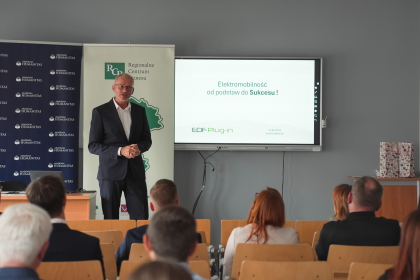 Główną część spotkania stanowiła prelekcja Jacka Łatkowskiego, Prezesa Zarządu EDFplug-in – lidera w branży elektromobilności. Łatkowski przedstawił aktualne trendy oraz przykłady wykorzystania nowoczesnych technologii w biznesie, podkreślając, jak ważny jest rozwój zrównoważonego transportu. Uczestnicy mieli możliwość poznania realnych możliwości rozwoju firm opartych na elektromobilności.