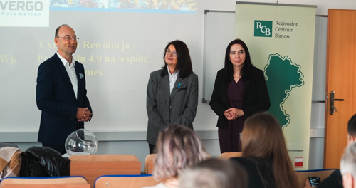 Głównym prelegentem wydarzenia był Krystian Bogdanik, właściciel Vergo-Automation Sp. z o.o., który w interesujący sposób przedstawił kluczowe aspekty Przemysłu 4.0. Prelekcja pozwoliła uczestnikom spojrzeć na Przemysł 4.0 z nowej perspektywy – jako na narzędzie, które nie tylko optymalizuje procesy, ale także otwiera przed firmami zupełnie nowe możliwości, w tym zwiększa ich konkurencyjność.