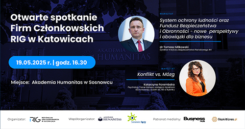 Udział w wydarzeniu jest bezpłatny dla firm członkowskich RIG w Katowicach oraz przedsiębiorców z siedzibą w Sosnowcu. Firmy niezrzeszone w Izbie mogą dołączyć odpłatnie – koszt udziału wynosi 199 zł.