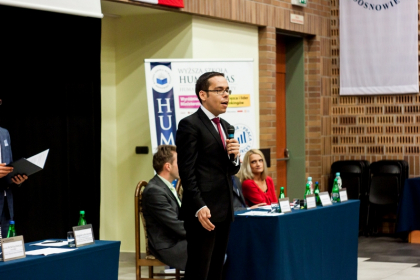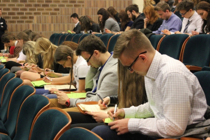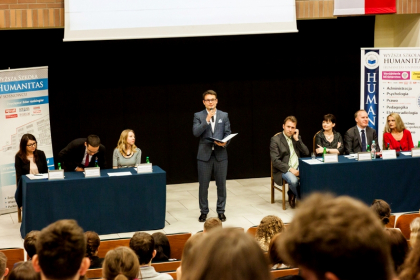Ogólnopolski Konkurs Wiedzy „Przyszłość w rozumie” to nowa inicjatywa Wyższej Szkoły Humanitas adresowana do uczniów szkół ponadgimnazjalnych z całej Polski, zainteresowanych tematyką prawa, administracji, pedagogiki, a także języka polskiego oraz rodzimej literatury. Wszystkie zgłoszone do konkursu osoby w piątek 22 maja spotkały się w auli WSH. Uczestników przywitał rektor WSH, dr hab. Michał Kaczmarczyk, który złożył młodzieży życzenia powodzenia i oficjalnie otworzył konkurs. – Cieszy nas, że widzimy państwa w tak licznym gronie oraz że zdecydowaliście się państwo zmierzyć z tak naprawdę niełatwymi dziedzinami wiedzy. Mam nadzieję, że uczestnictwo w konkursie tylko utwierdzi państwa w wyborze w przyszłości ścieżki kształcenia związanej z zawodami prawniczymi, administracyjnymi, czy językowymi – mówił prof. WSH Michał Kaczmarczyk.