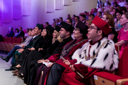 Absolwenci studiów podyplomowych wraz z rodzinami i przyjaciółmi, przedstawiciele władz samorządowych oraz instytucji lokalnego życia publicznego, kultury i oświaty, nauczyciele akademiccy, reprezentanci partnerów uczelni, a także pracownicy WSH, we wtorek 7 lipca wypełnili po brzegi Salę Koncertową Zespołu Szkół Muzycznych w Sosnowcu, uczestnicząc w uroczystej Gali Absolwentów Studiów Podyplomowych WSH. W tym roku mury uczelni opuściło ponad 800 osób. Blisko połowa dyplomy ukończenia studiów odebrała właśnie podczas Gali.