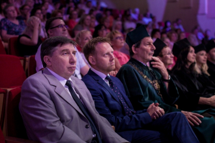 Gratulacje i życzenia absolwentom złożył także w imieniu prezydenta Sosnowca, jego zastępca, Krzysztof Haładus. – Człowiek uczy się przez całe życie. Wiedzy nigdy nie jest za dużo, bo nauka tak naprawdę nigdy się nie kończy. W imieniu prezydenta, Arkadiusza Chęcińskiego, pragnę pogratulować państwu wyników, ale także zaprosić do wspólnego podróżowania w przyszłość i pomyślność naszego miasta oraz naszych pokoleń – powiedział wiceprezydent Haładus.