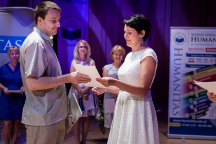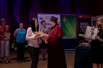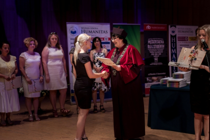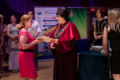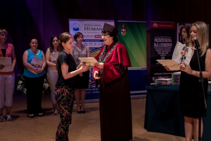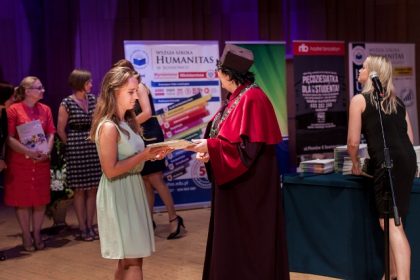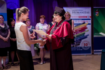 Wręczyła je dziekan WSH, prof. Maria Zrałek. – Uczestniczyliście państwo w zajęciach, które, mamy nadzieję, były dla was inspirujące i ciekawe. Pamiętajcie, że nieważne jest by człowiek dużo wiedział, ale dobrze wiedział. Nie umiał na pamięć, ale rozumiał. Życzę wam, abyście i wy mądrze się uczyli i nie przestali się rozwijać – powiedziała dziekan Zrałek.