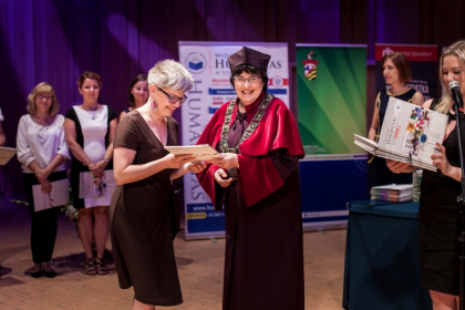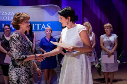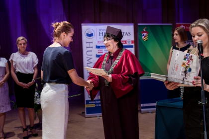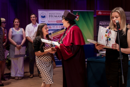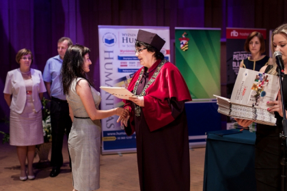 Specjalne wyróżnienia dla najlepszych absolwentów wręczyła także Agata Dudek, wicekanclerz i dyrektor Centrum Studiów Podyplomowych WSH. – To dla mnie ogromna radość móc co roku wyróżniać tych spośród naszych studentów, którzy osiągnęli bardzo dobre wyniki na egzaminie dyplomowym, brali aktywny udział w zajęciach oraz cechowali się wzorową postawą studencką. Serdecznie państwu gratuluję – mówiła wicekanclerz.