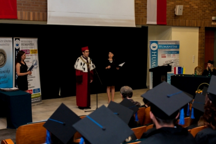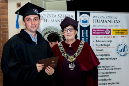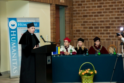 Absolwentom gratulował również prof. Yuri Karyagin, dyrektor Instytutu Polsko-Ukraińskiej Współpracy. Złożył również podziękowania władzom WSH: – Z całego serca dziękuję panu kanclerzowi oraz rektorowi Wyższej Szkoły Humanitas, za otwarcie drzwi ich uczelni dla młodzieży z Ukrainy. Tym samym ma ona możliwość nie tylko pobierać edukację zgodną z wybranym przez nich kierunkiem, ale również przyglądać się z bliska temu jak buduje się demokrację.