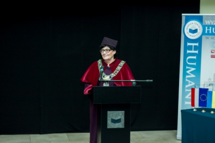 - Wszystkim państwu, którzy 2 lata temu wybrali nasza uczelnię, jako miejsce, w którym chcą zdobywać wiedzę, dziękuję i serdecznie gratuluję uzyskanych dyplomów. To bardzo ważne, że zdecydowaliście się państwo na uzyskanie dyplomu, będącego przepustką do Unii Europejskiej. Cieszy fakt, że młode pokolenie Ukraińców pragnie budować swój kraj inspirując się ideami, które zapewniają gwarancję wolności i szanują różnorodność – mówiła prodziekan ds. współpracy z zagranicą, mgr Maja Chyży-Dudek.