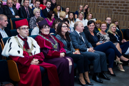 Obok absolwentów i ich bliskich, w auli Humanitas obecni byli wykładowcy, promotorzy oraz władze uczelni: wicekanclerz – mgr Agata Dudek, rektor – dr hab. Michał Kaczmarczyk, dziekan Wydziału Nauk Humanistycznych oraz Wydziału Administracji i Zarządzania – prof. Maria Zrałek, prodziekan Wydziału Nauk Humanistycznych – mgr Ewa Kraus, prodziekan Wydziału Zarządzania i Administracji – dr Maciej Borski oraz prodziekan ds. nauczania – mgr Jolanta Łozińska-Dudek.