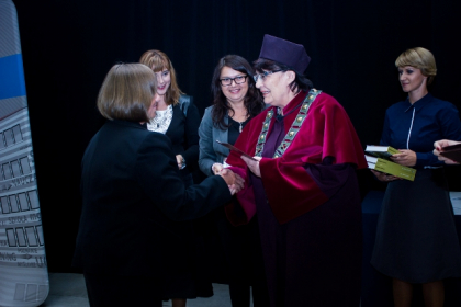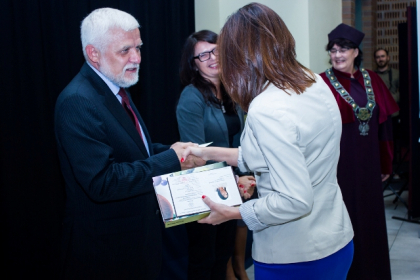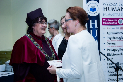 Gratulacje i życzenia absolwentom złożyła także dziekan WSH, prof. Maria Zrałek: - Gratuluję państwu, że jesteście tu dzisiaj w charakterze absolwentów. Pamiętajcie, że wiedza wymaga ciągłego utrwalania i poszerzania. Jest waszym skarbem, ale i kluczem. Oprócz wiedzy, chcieliśmy też kształtować u państwa pewne postawy, które, mam nadzieję, pomogą państwu podejmować nawet trudne decyzje. Pamiętajcie, że idąc przez świat, kształtujemy go poprzez swoje czyny. Życzę wam, aby wasza droga zawodowa i rodzinna była piękna i pełna sukcesów, ale abyście zawsze pamiętali także o jej drugim aspekcie.