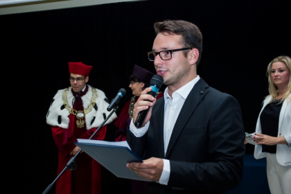 – Podsumowujemy dziś ważny etap w państwa życiu. Mam nadzieję, że Wyższa Szkoła Humanitas wyposażyła państwa w umiejętności poszukiwania odpowiedzi na pytania. Chcemy poszerzać państwa horyzonty, dawać narzędzia do tego, by być intelektualistami. Czy nam się udało, sami musicie państwo ocenić – mówił dr hab. Michał Kaczmarczyk, rektor WSH otwierając Galę Absolwentów Wyższej Szkoły Humanitas. – Dziś odbierają państwo dyplom uczelni, z którego, mam nadzieję i wierzę w to głęboko, są państwo dumni. Wierzę też, że lata spędzone w naszej uczelni, to nie tylko lata, które będą się państwu kojarzyć z egzaminami i seminariami, ale także z rozrywką, zabawą, uśmiechem i przyjaźniami – dodał.